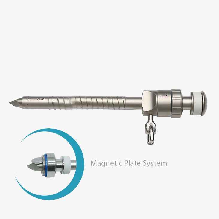This trocar features a magnetic spiral mechanism that enhances instrument control and helps maintain secure placement during laparoscopic surgery. It is widely used in general surgery, gynecology, bariatric surgery, and urology, where reliable access ports are essential for surgical instruments and laparoscopes.